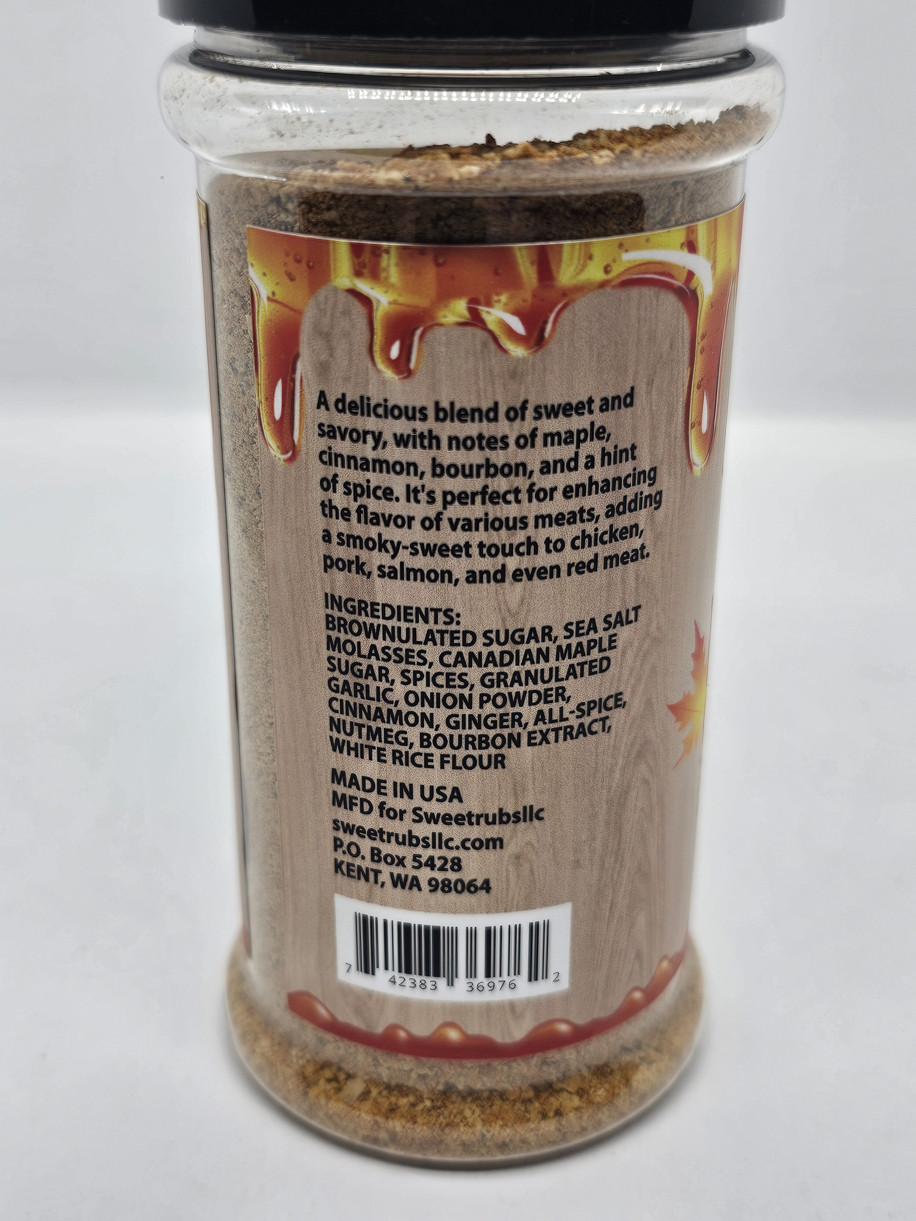 A DELISHIOUS BLEND OS SWEET AND SAVORY, WITH NOTES OF MAPLE, CINNAMON, BOURBON AND A HINT OF SPICE. I’TS PERFECT FOR INHANCING THE FLAVOR OF VARIOUS MEATS, ADDING A SMOKY-SWEET FINISH TO CHICKEN ,PORK, SALMON, AND EVEN RED MEAT YUMMMMY.